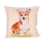 Alfi – Corgi welsh pes – Gobelín návliečka na vankúš so strojovým vyšitím obľubeného kráľovského psíka corgi-ho. Corgi je plemeno pasúceho sa dobytka, oviec a koní. Pôvod pembroke a cardigan nie je úplne známy, ale je isté, že corgi sú veľmi staré plemeno. Tento obľúbený kráľovský spoločník je hlavným motívom na tejto návliečke.  Na béžovej návlečke na vankúši je pes corgi.