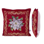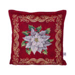 Belimo – Vianočná ruža – Pripojte váš domov k vianočnému rozprávkovému pôvabu s týmto malým gobelínovým vankúšom. Na jeho tmavo-červenom podklade vyniká veľká krásna vianočná ruža v bielej jemnosti, sprevádzaná konárikmi jarabiny, ktoré pridávajú dotyk prírodného nádychu. Zlatý dekor po stranách vankúša sa mihá ako vianočné svetielko, dotvárajúc elegantný rámec pre túto vianočnú krasavicu. Tento vankúš nie je len dekoratívnym prvkom, ale aj príjemným dotykom luxusu a vkusu vo vašom interiéri.