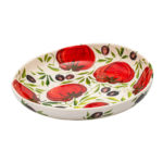 Doveli – veľká jedna s najvačších misiek. Má až 38 cm a jej hlbka je 7 cm. Masívna misa XL je maľovaná vo viacerich motívoch kde tento kus je maľovaný veľkými rajčinami a tmavo fialovími olivami po celej ploche. Má univerzálne použitie krásnu maľbu masívny tvar a je krásne glazovaná.