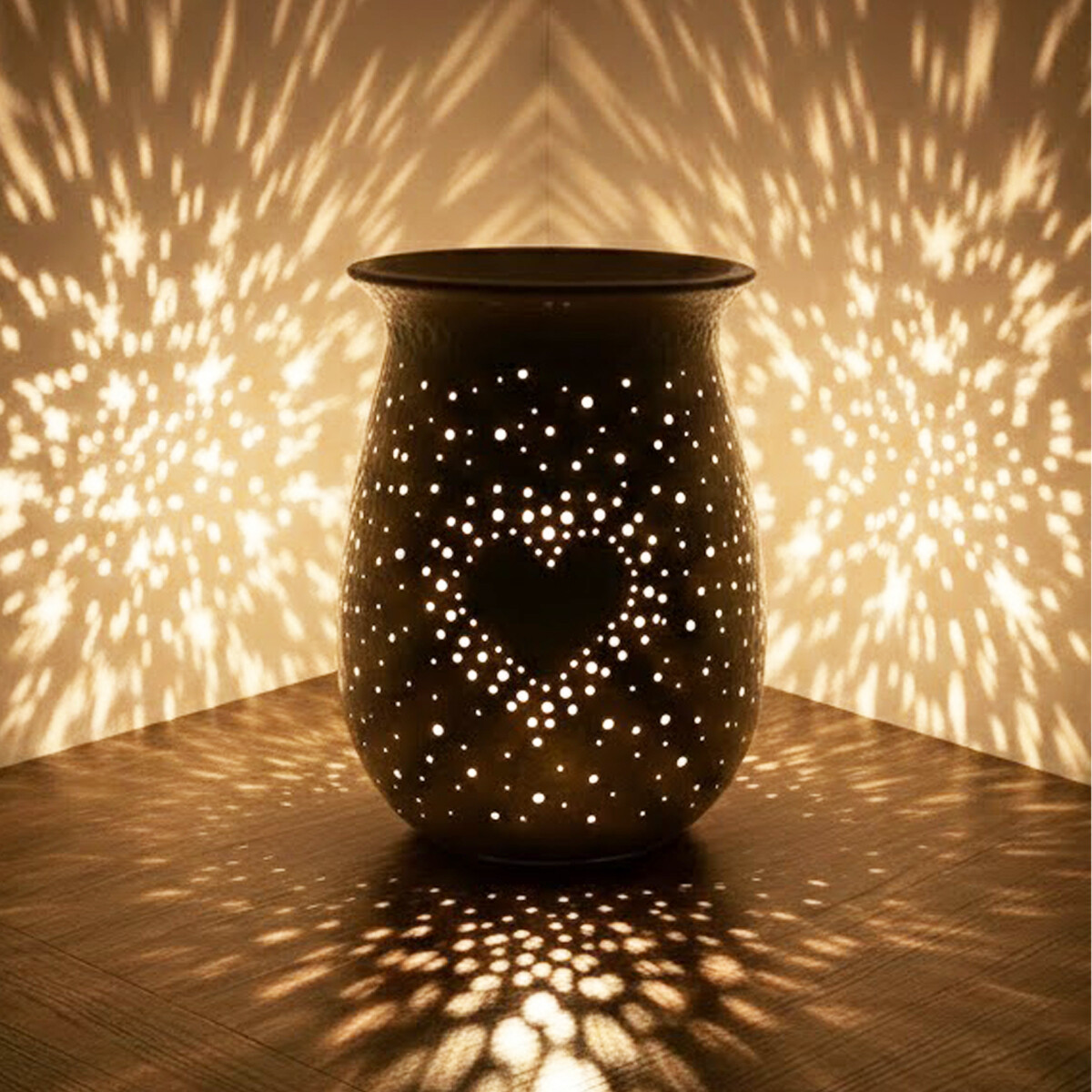 Dizajn, možnosti a atmosféra – Tento model ponúka výnimočnú variabilitu – slúži ako svietnik na čajovú sviečku a LED drôtik, alebo ako štýlová váza na suché kvety. Tisíce ručne vytvorených dierok v troch veľkostiach vyčaria po zapálení hviezdnu atmosféru a teplo domova. Vďaka snehobielej farbe a symbolu srdca je ERIK ideálnym spoločníkom pre romantické večery. Hoci nie je určený pre elektrický kábel, jeho prirodzené svetlo vnáša do interiéru pokoj, bezpečie a neopakovateľný vizuálny zážitok.