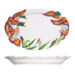 Fagiano – Tento majestátny podnos patrí medzi najväčšie v ponuke a okamžite upúta pozornosť svojou masívnou eleganciou. S poľovníckym motívom divej husi je dokonalým spoločníkom pre veľkolepé hostiny a rodinné oslavy. Ideálny na servírovanie pečeného prasiatka, pečeného bažanta, domácej husi či iných lahôdok, ktoré si zaslúžia čestné miesto na stole. Jeho veľkosť a presné spracovanie z neho robia nielen dekoratívny ale aj praktický kúsok, ktorý dodá stolovaniu iný rozmer. Buon gusto.