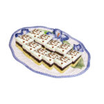Flowerio Blue – Veľký, až 43 cm široký košíkový podnos, je nádherne biely a dokonale glazovaný, vďaka čomu pôsobí elegantne a sviežo. Jeho dominantou je veľký modrý kvet so zelenou stonkou, ktorý okamžite pritiahne pohľad a stiahne atmosféru rozkvitnutej letnej lúky. Tento podnos sa maľuje v troch farebných variantoch, čím ponúka možnosť vybrať si ten pravý do vášho domova. Skvelý na servírovanie sladkých prekvapení.