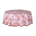 Gorato – Pestrofarebné listy – Oživte váš jedálny stôl s týmto okrúhlym bavlneným obrusom, ktorý vniesol nádych jesene priamo do vášho interiéru. Jeho dekor v podobe lístia v kombinácii s nádhernými odtieňmi beževej, ružovej a modrej farby vytvára harmonický obraz prírody. Delikátne bobuľoviny v modrej farbe pripomínajú jarabinu, dodávajúc obrusu sviežosť a romantiku. Každý pohľad na tento obrus je ako prechádzka rozkvetlým záhradným rajom, kde farby a vzory spolu tancujú v nádhernom spoločenstve.