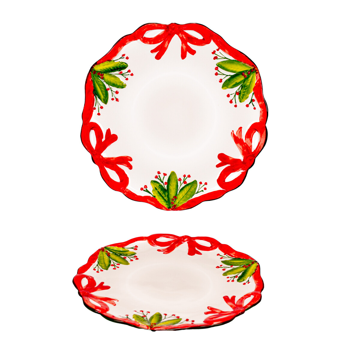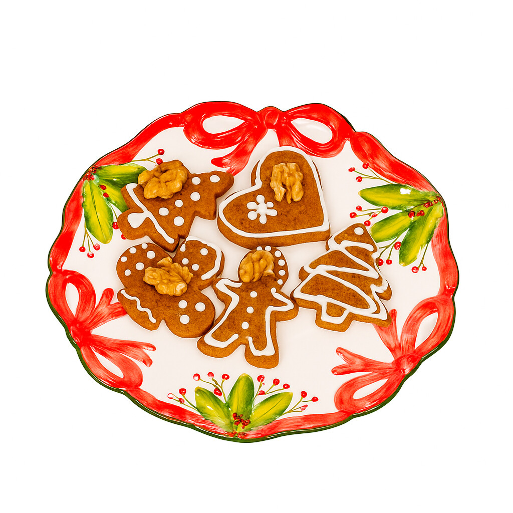Podnos – naše keramické podnosy spájajú praktickú funkčnosť s umeleckou hodnotou. Každý kus je ručne maľovaný a ošetrený kvalitnou glazúrou pre vysoký lesk a trvanlivosť farieb. Okrem vianočného motívu ponúkame aj stredomorské vzory ako citróny či olivy. Vďaka svojmu tvaru a odolnosti je ideálny na servírovanie dezertov, ale poslúži aj ako výrazný dekoratívny prvok, ktorý rozžiari váš domov.