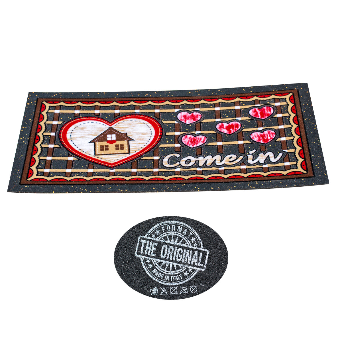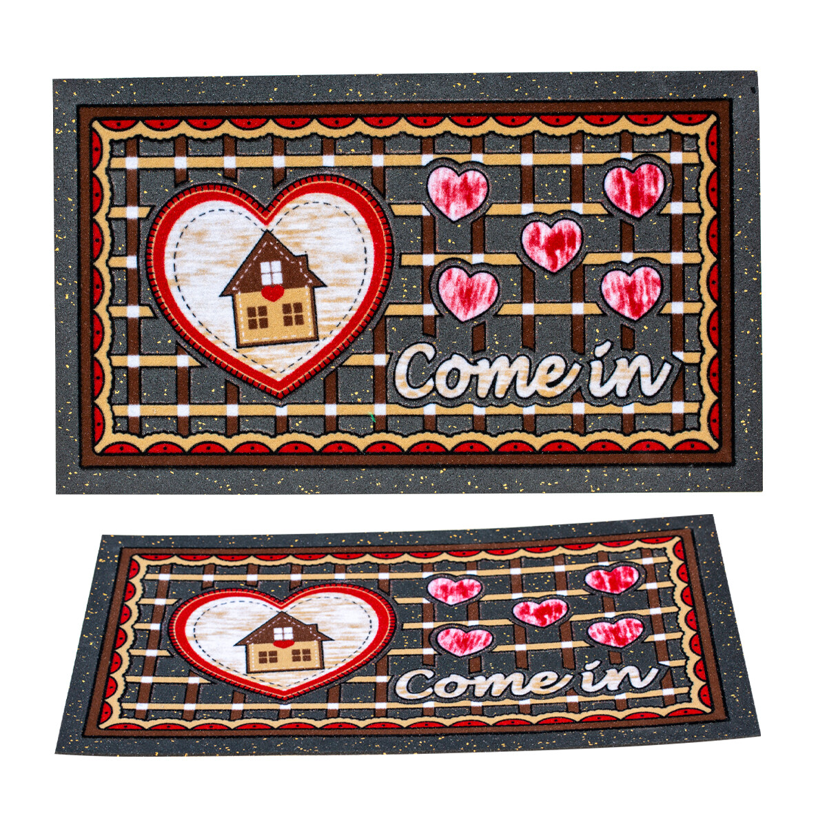 Domov Bytové doplnky Rohož pred dvere Melazo – srdce & domček gumená rohož pred dvere