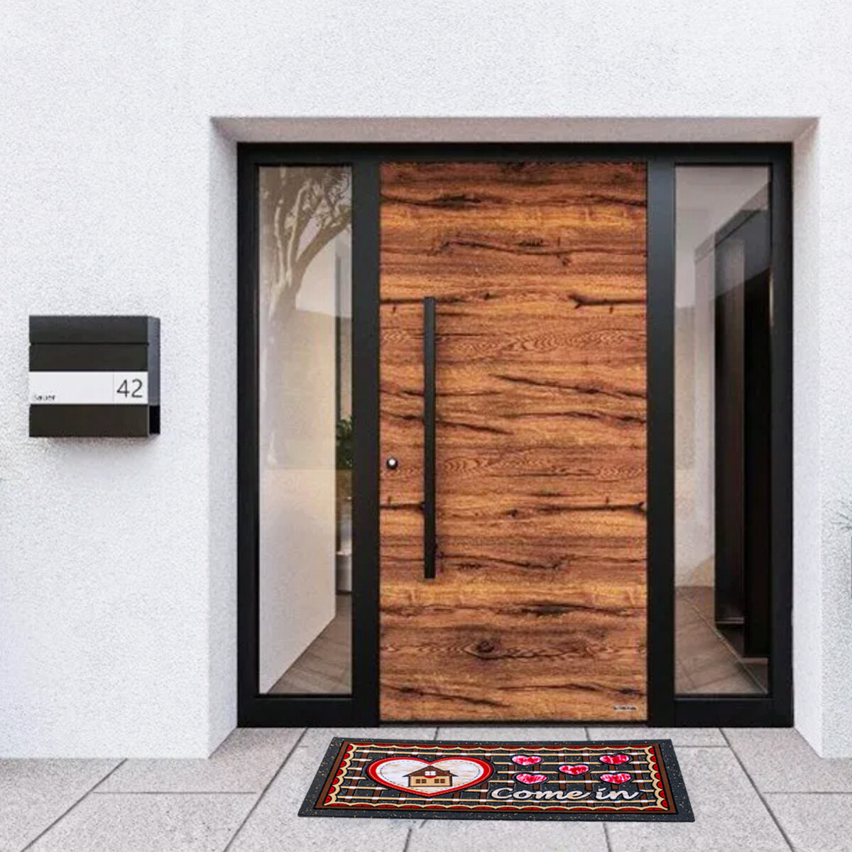 Rohožka – Gumená rohožka pred dvere je odolná a trvanlivá, vyrobená z 98% recyklovanej gumy a 2% polyamidu. Efektívne zachytáva nečistoty a vlhkosť, je ekologicky šetrná a prispieva k udržateľnosti. Ideálna na vonkajšie použitie, zabezpečuje čistotu vstupu do domu