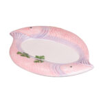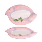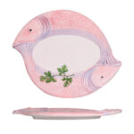Renesko – podlhovastý jemne ružový podnos s výrazne ružovými reliéfnymi rybami na oboch koncoch je stvorený pre milovníkov morských špecialít. Detailne prepracované šupiny dodávajú rybám jedinečný vzhľad a zároveň podčiarkujú umelecké spracovanie. Rybia tématika je harmonicky zkomponovaná do celkového dizajnu, čím vytvára sofistikovaný dojem. Krásna glazúra dodáva podnosu jemný lesk, vďaka čomu sa stane nielen praktickým, ale aj estetickým doplnkom vášho stola.