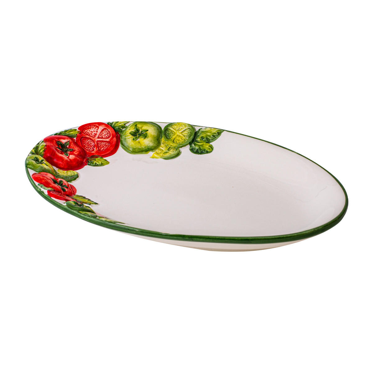 Renomo  je keramický podnos ovalného tvaru. Je jeden s najvačších ponúkaných rozmerov.  Je to podnos na prípravu a servírovanie obložených chlebíkov, syru, pečeného mäsa,  jednohubiek a ďalšie širšie použitie. Je ručne maľovaný v motívoch červených a zelených paradajok po okraji podnosu a čístým bielym stredom.  Podnos glazovaný.