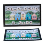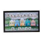 Sefino – Očarte svojich hostí našou gumenou rohožou s bledým pozadím a malými talianskymi farebnými domčekmi s nápisom „Benvenuti A Casa“! Táto rohož dodá vášmu vstupu prívetivý vzhľad a teplý taliansky šarm. Efektívne zachytí nečistoty a vlhkosť, čím udrží váš dom čistý. Vyrobená z odolnej gumy, je trvanlivá a praktická na každodenné použitie. Pridajte dotyk Talianska a pohodlia k svojmu prahu s touto jedinečnou rohožou!