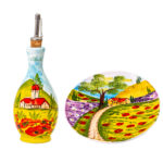 Toscana Italia Country je krásna ručne maľovaná fľaša na ocot alebo olivový olej.  Maliar ručne maľuje krajinu kvety, stromy. Je to originálna maľba na každom výrobku ktorá sa následne glazujeje a vypáli v peci. Patrí do série Italia Country .